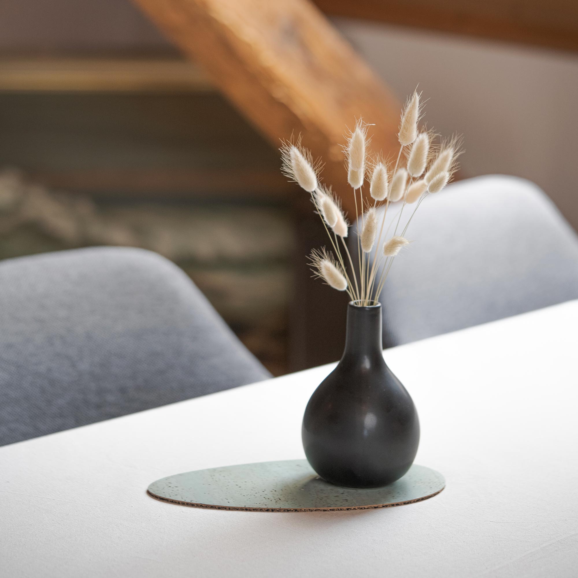 The top of the placemat is made of 100% cork leather, a continuous layer of cork that is durable and robust. The back is made of a cork-rubber mixture that ensures the placemat doesn't slip. Together, they create a truly fantastic combination of materials that we're very proud of.