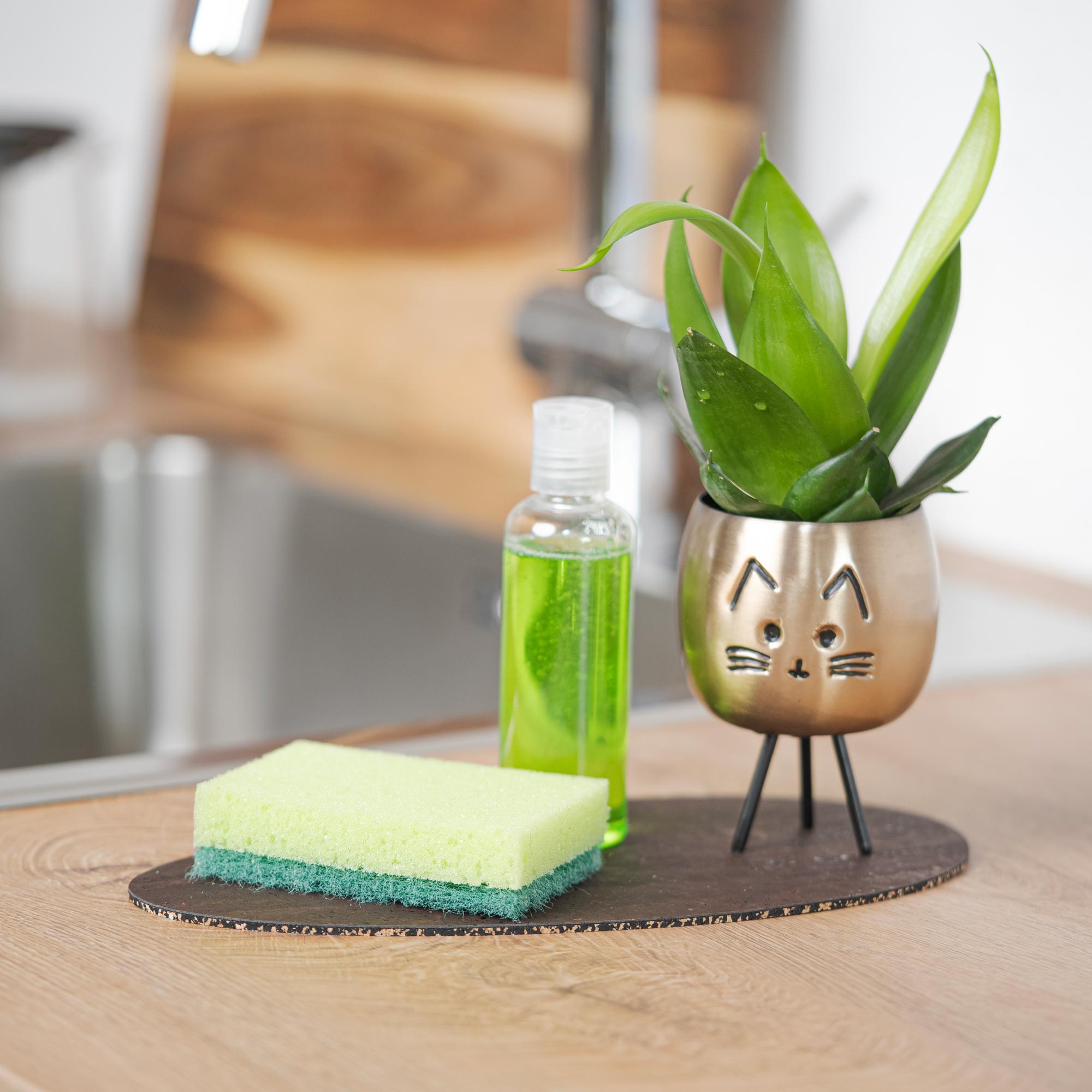 Cork is extremely easy to clean and requires minimal maintenance. The surface is washable and can be easily wiped clean with a sponge. Sauces and food residues don't stick, and the surface is also resistant to liquids thanks to its water-repellent finish.