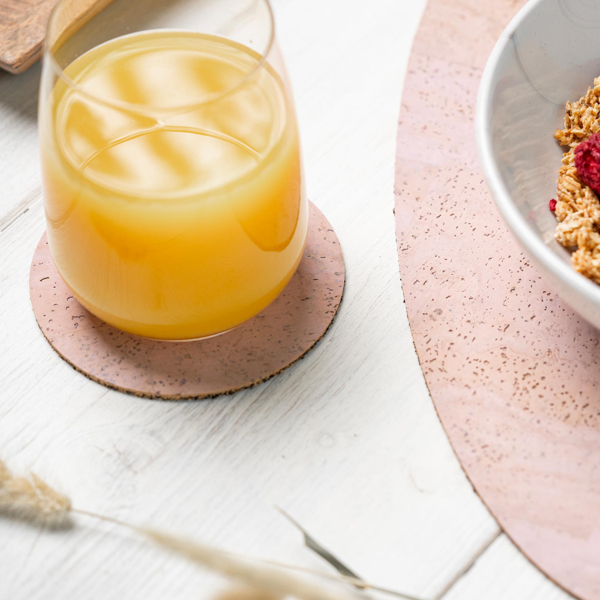 The top of the placemat is made of 100% cork leather, a continuous layer of cork that is durable and robust. The back is made of a cork-rubber mixture that ensures the placemat doesn't slip. Together, they create a truly fantastic combination of materials that we're very proud of.