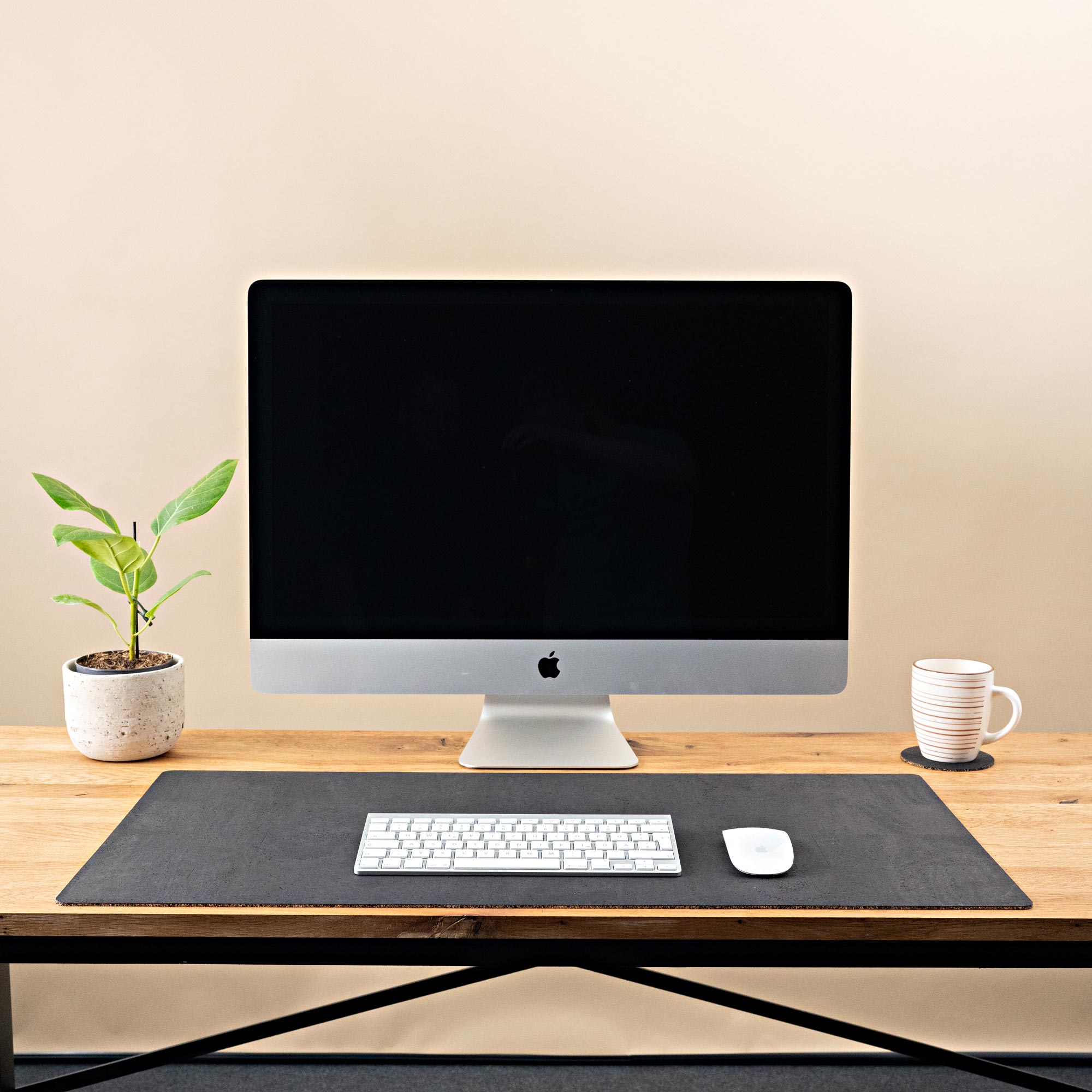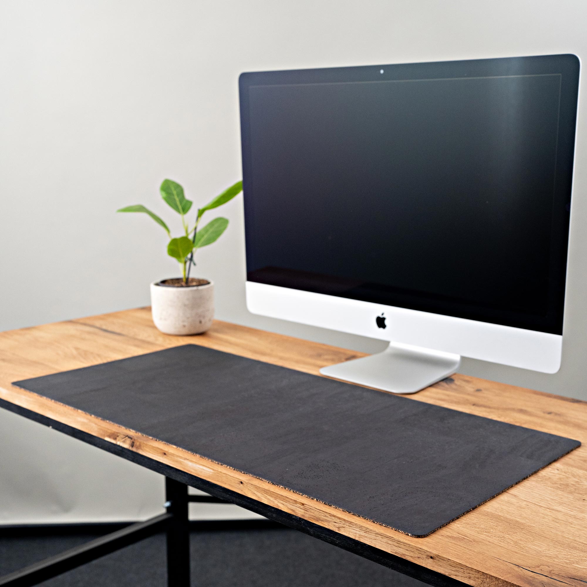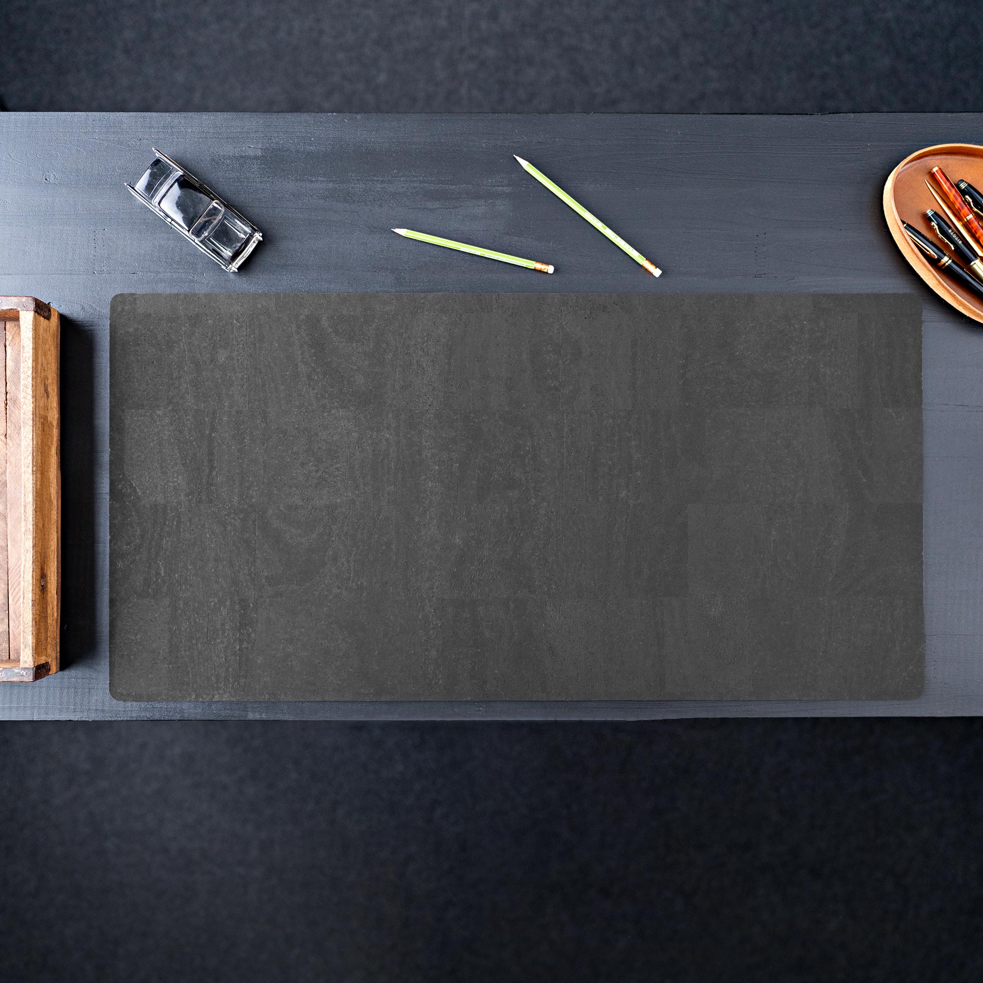 The top surface of the desk pad is made of 100% cork leather, a continuous layer of cork that is durable and robust. The back is made of a cork-rubber mixture that ensures the cork desk pad doesn't slip. Together, they create a truly great material combination that we are very proud of.