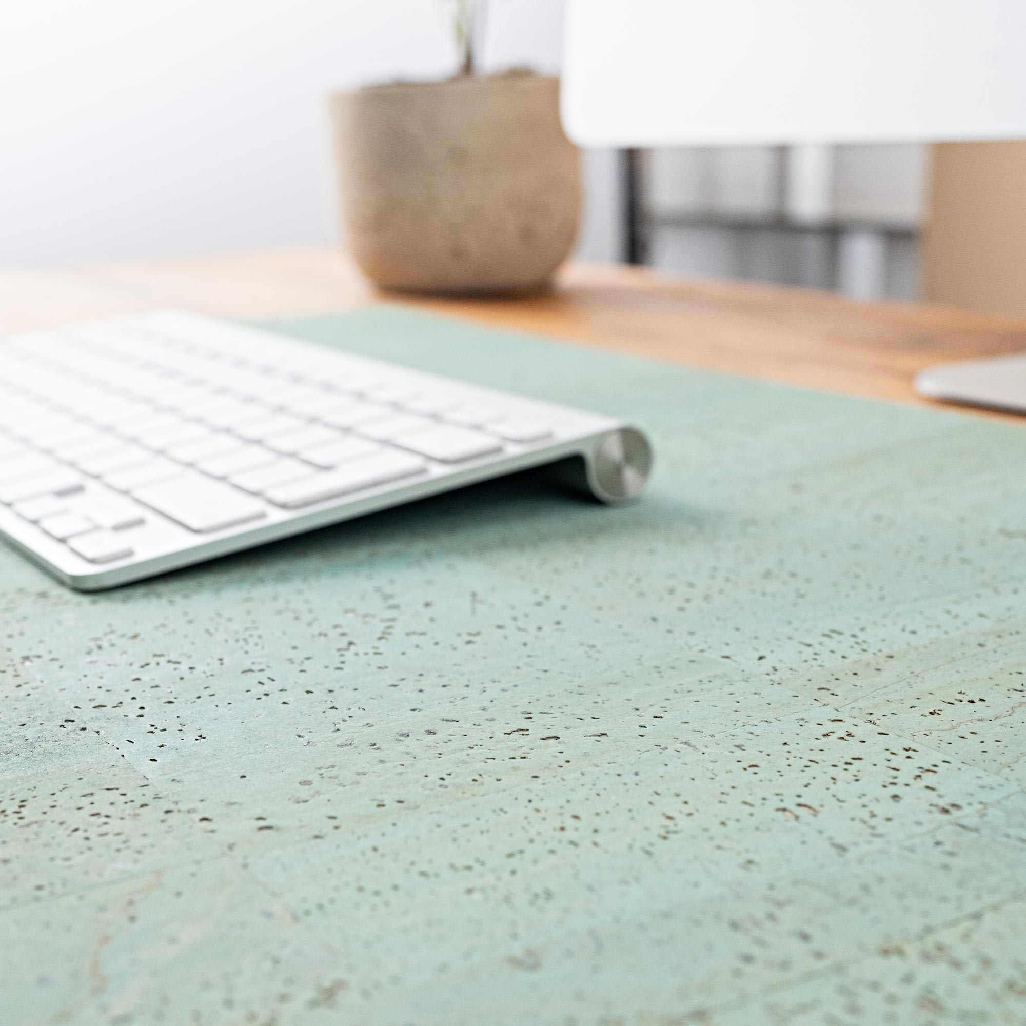 Desk pads made of cork leather are slightly thicker than the other materials. The surface feels very smooth.